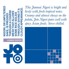 Joto Nigori is a junmai, which lends a dry, earthy balance to the milky, coconutty fruit notes that are typical of the nigori style.